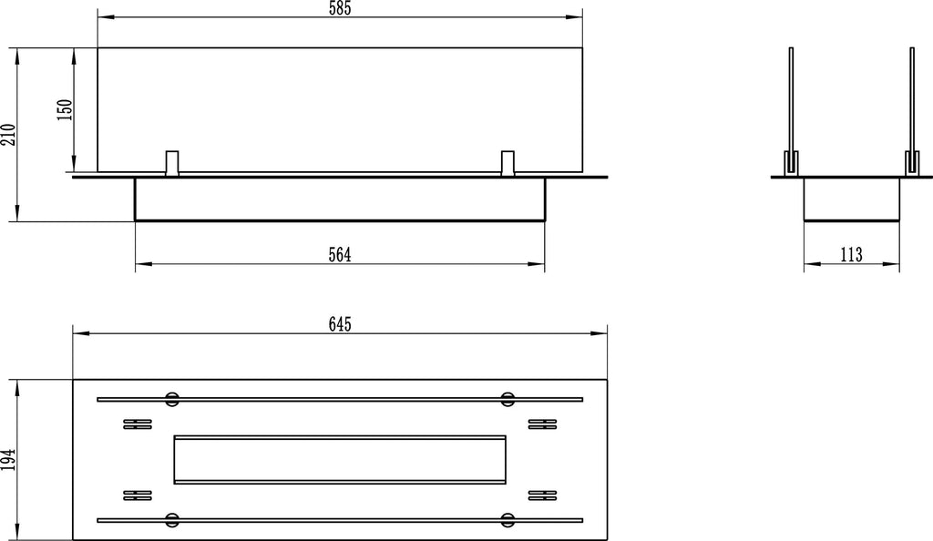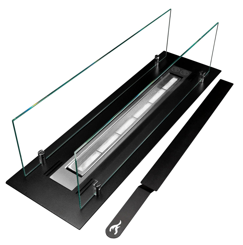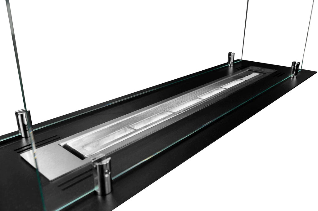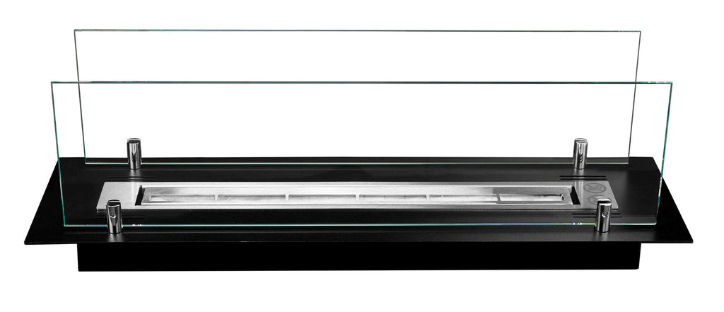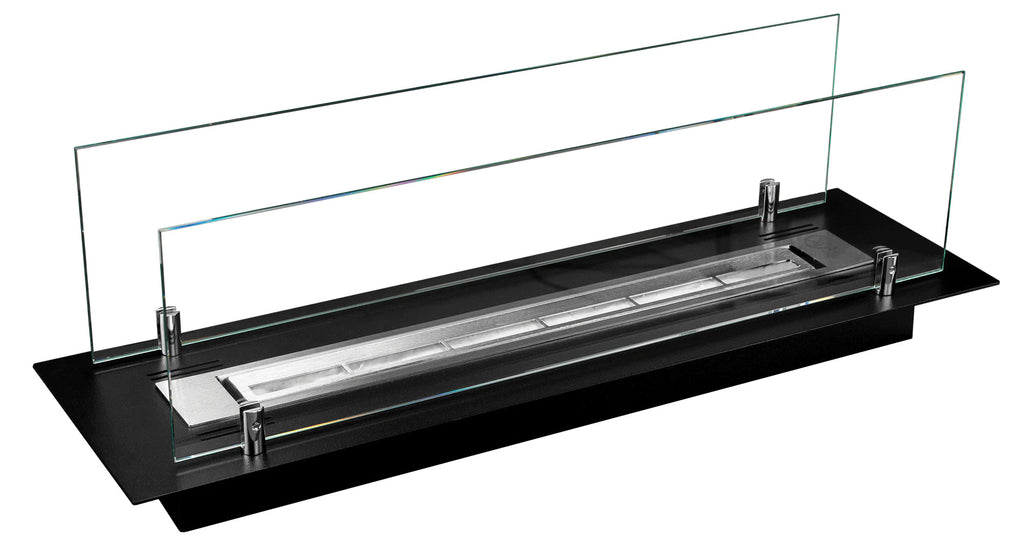 Camino a Bioetanolo da Incasso 64,5x19,4x21 cm in Acciaio con Vetri Nero