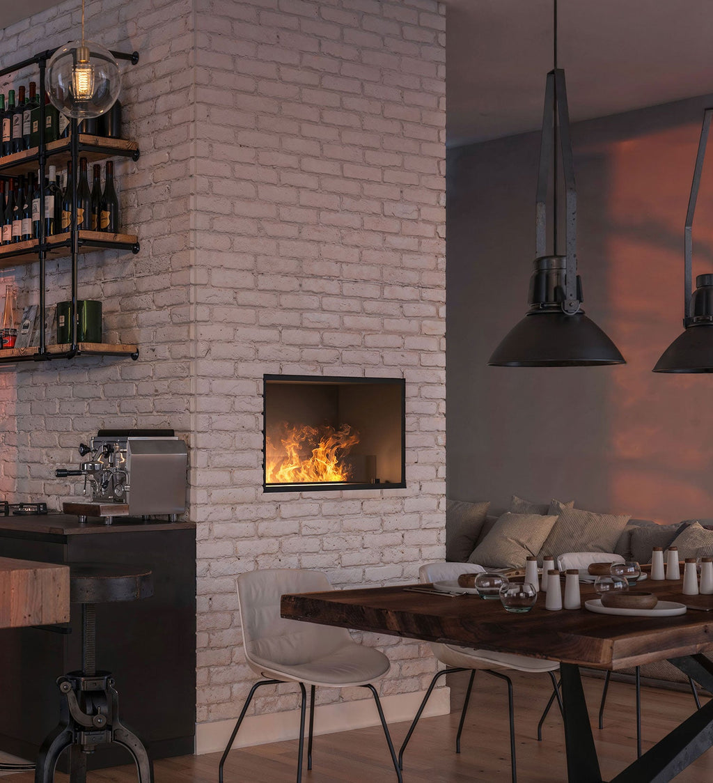 Il caminetto Invapo combina il vapore acqueo con la moderna illuminazione a LED, creando effetti di fiamma realistici senza i rischi associati al fuoco reale. Le fiamme sono generate da acqua nebulizzata, illuminate da luci a LED in qualsiasi tonalità di colore scelta.