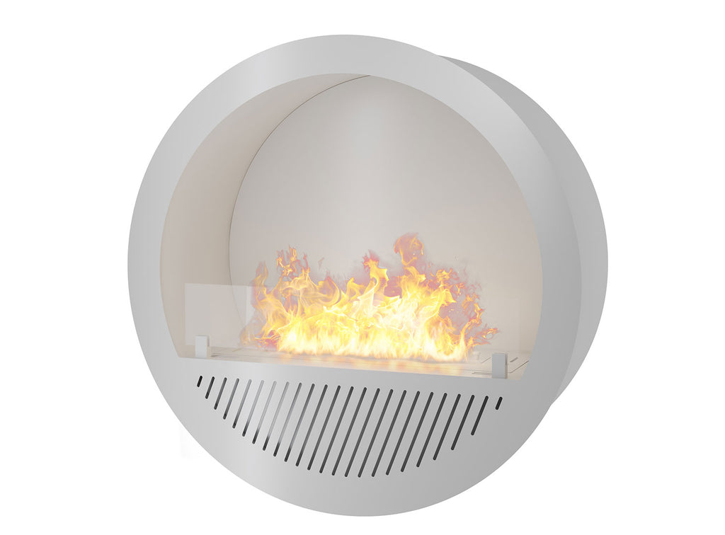 Biocamino Incyrcle Slim Inside: elegante camino rotondo a bioetanolo progettato per essere montato a parete, disponibile in due colori sofisticati: il classico bianco e il moderno nero, in cui anche il bruciatore è in linea con il colore dell'alloggiamento, nero o bianco. Questo biocamino è la combinazione perfetta di stile e funzionalità, e la forma circolare minimalista con un profilo sottile, che oltre a sottolineare chiaramente la forma può nascondere le imperfezioni dell'apertura della nicchia, si adatta perfettamente a diversi stili di interni.