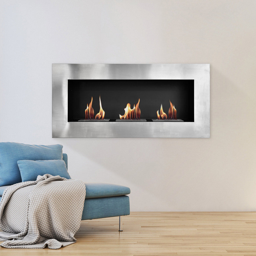 Cheminée Bioéthanol Murale 150x70x22 cm Keira Noir et Acier