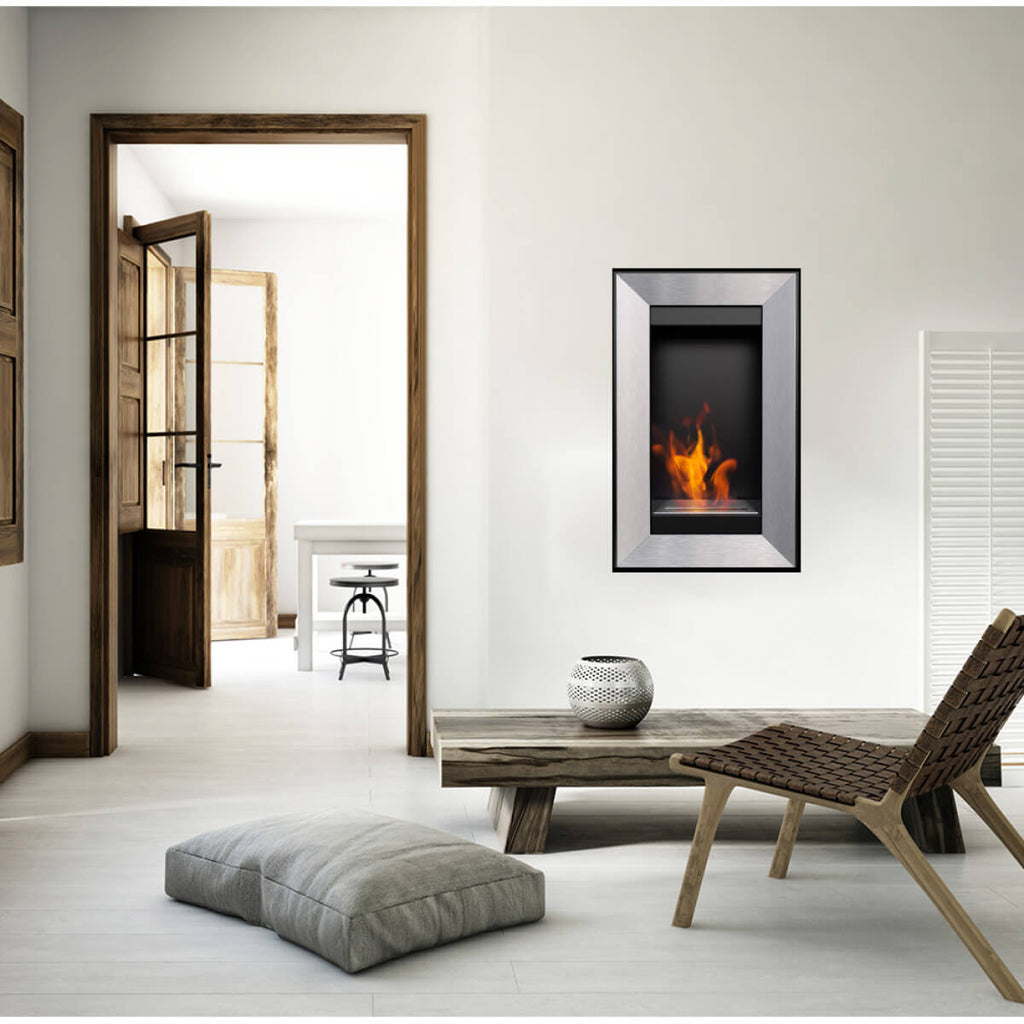 Cheminée Bioéthanol Murale 46x78 cm avec Vitre Flig Las Vegas 2 Argent
