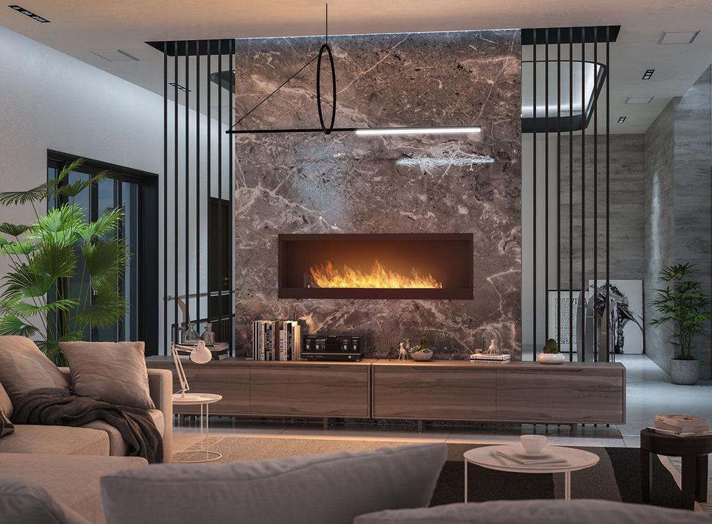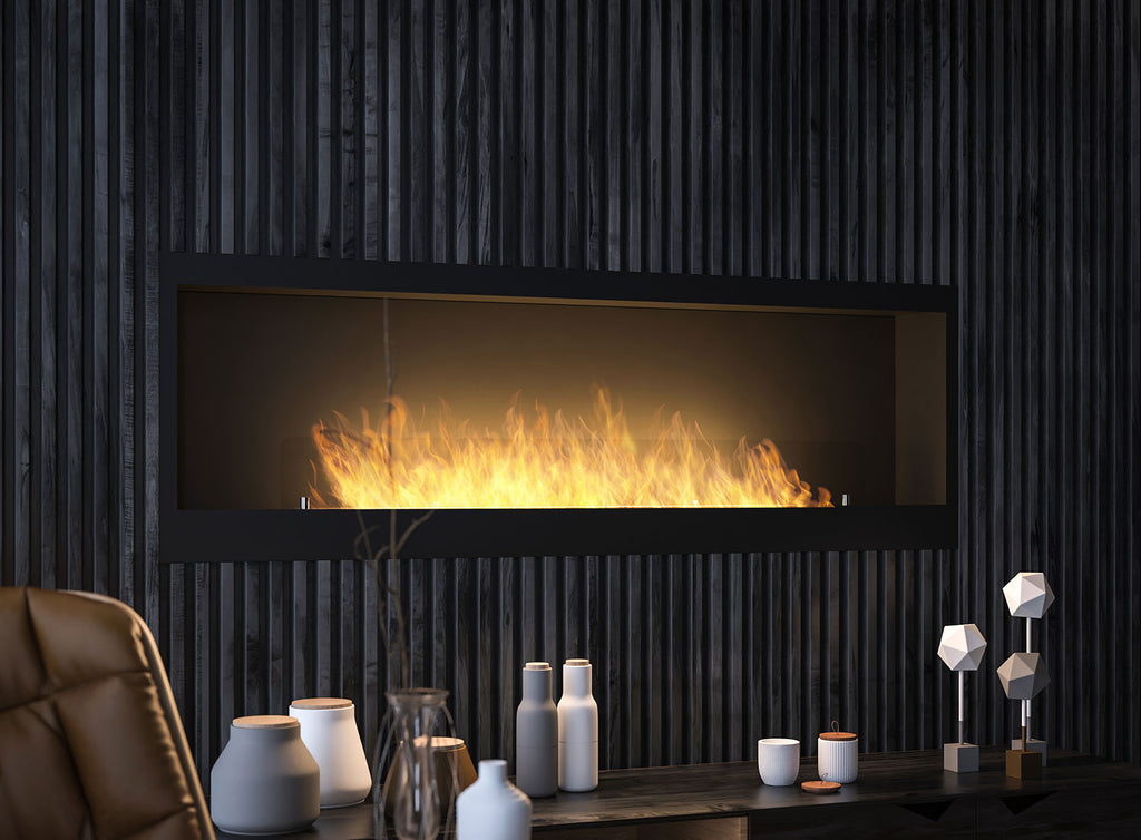 INSIDE 1500 la plus grande cheminée encastrable avec un brûleur de 100 cm et une longue ligne de feu.