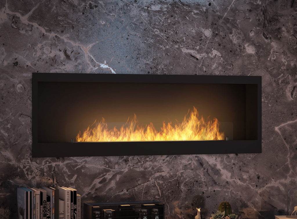 Cheminée au Bioéthanol encastrable 50x22x150 cm Intérieur 1500 Noir avec Verre