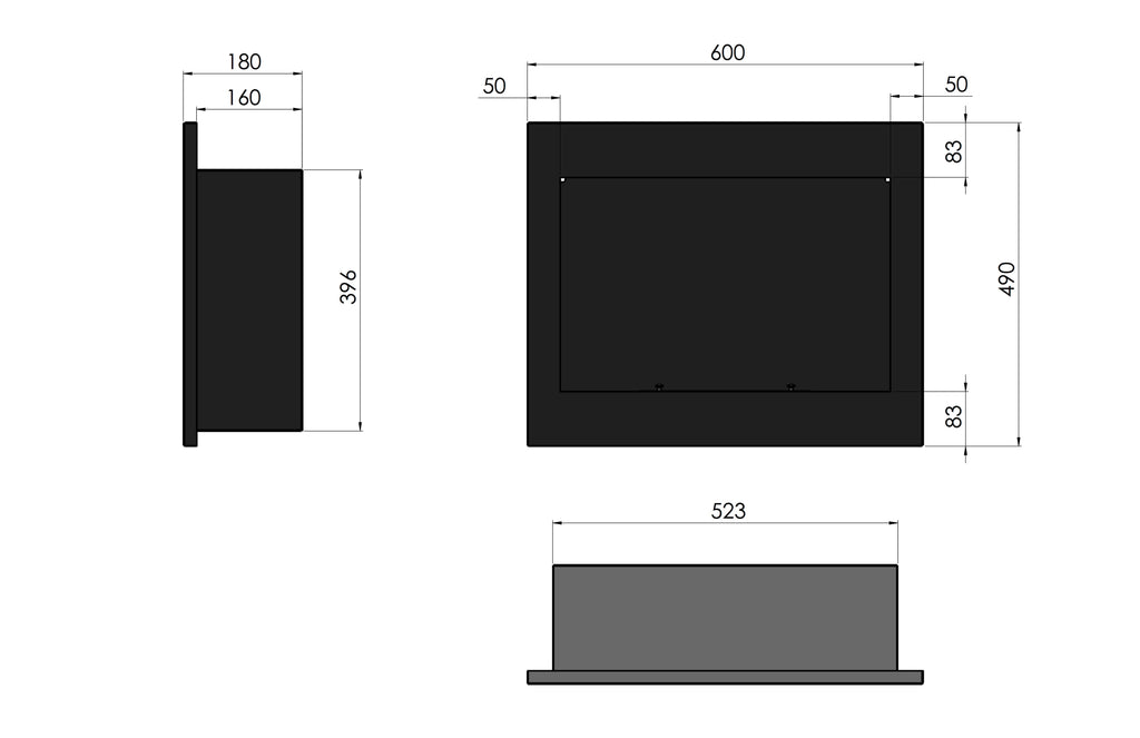 Cheminée Bioéthanol Murale 60x49 cm Frame 600 Noir