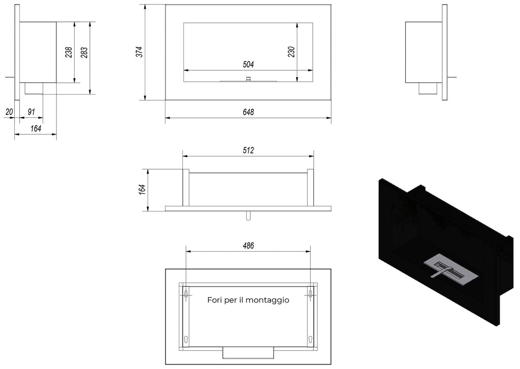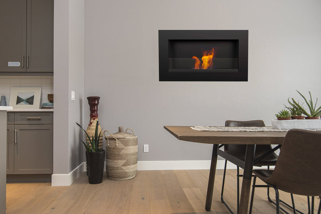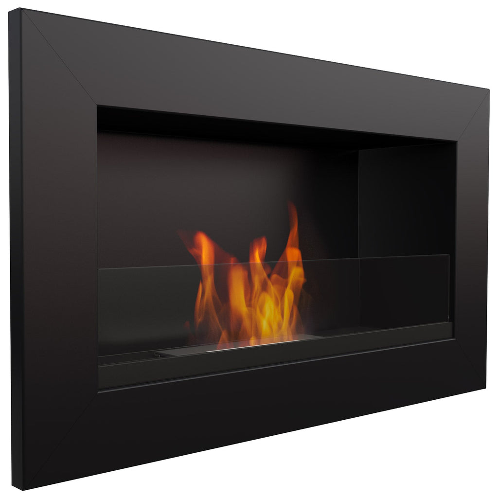 Cheminée Bioéthanol Murale 64,8x37,4 cm avec Vitre ou Sans Vitre Flig Washington Noir