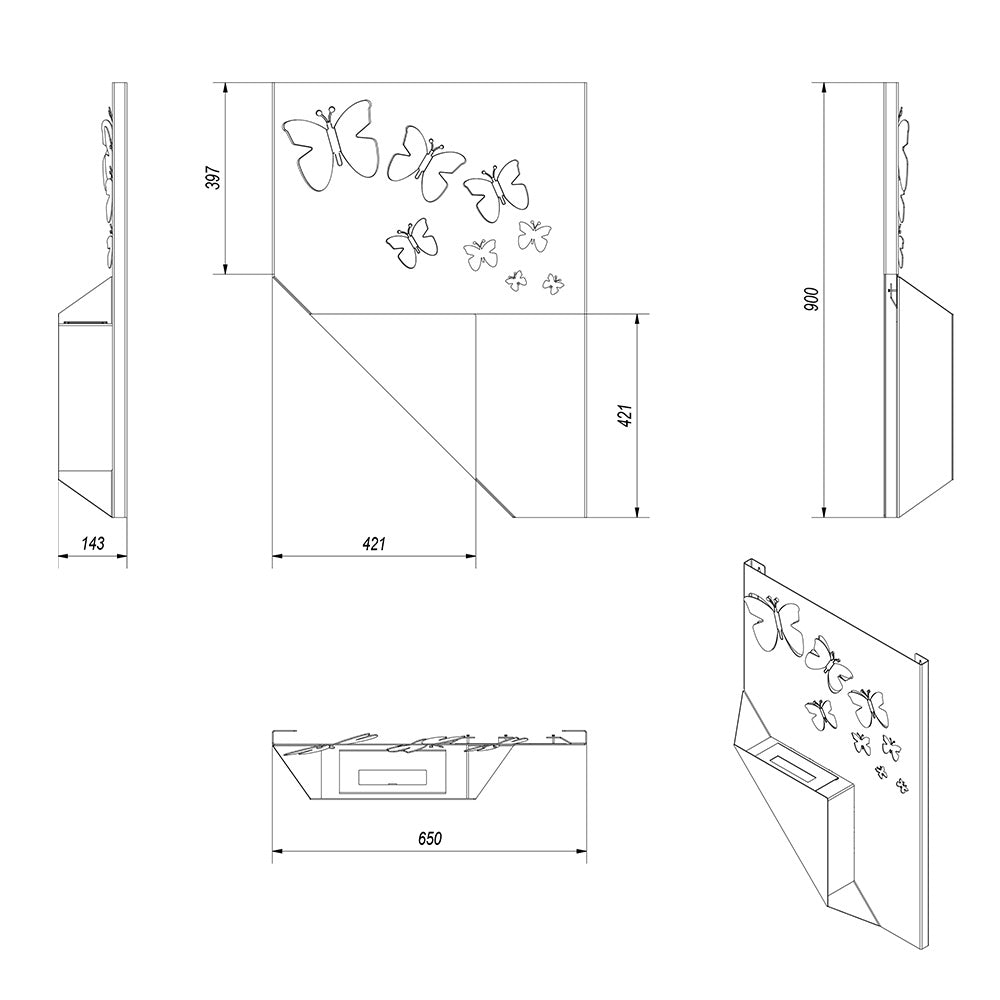 Cheminée Bioéthanol Murale 65x90 cm Flig Honolulu Papillons