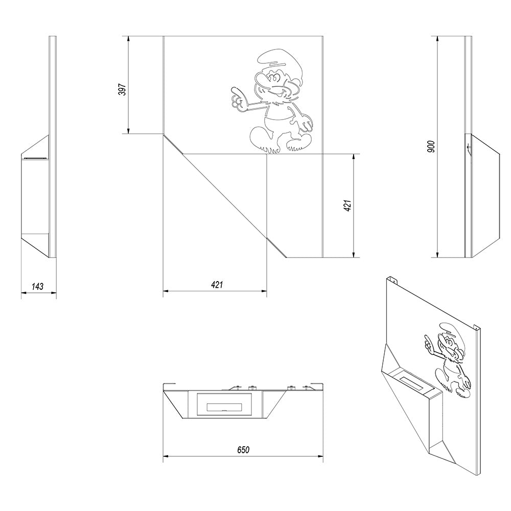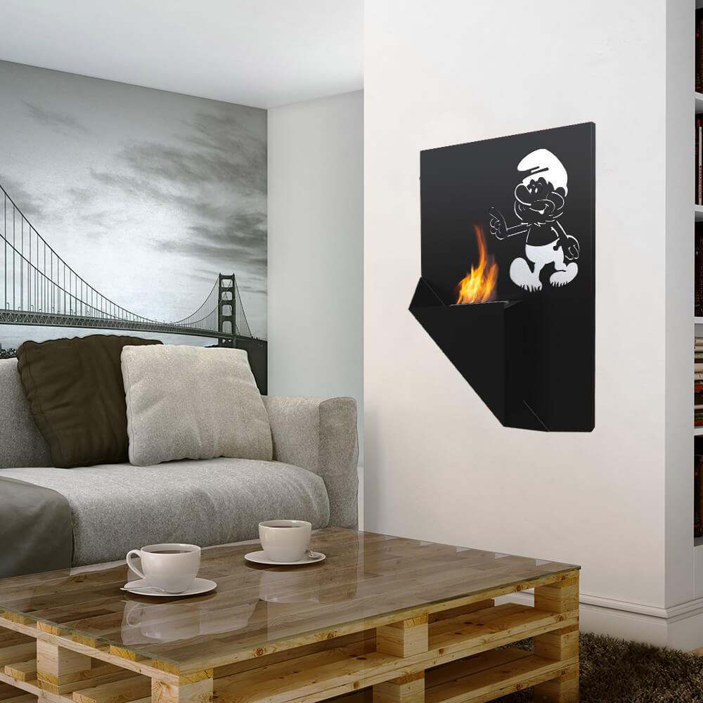 Cheminée Bioéthanol Murale 65x90 cm Flig Honolulu Schtroumpfs