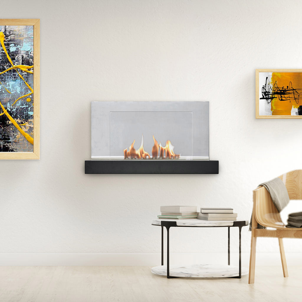 Cheminée murale au bioéthanol 80x50x35 cm Kelly Noir et Acier