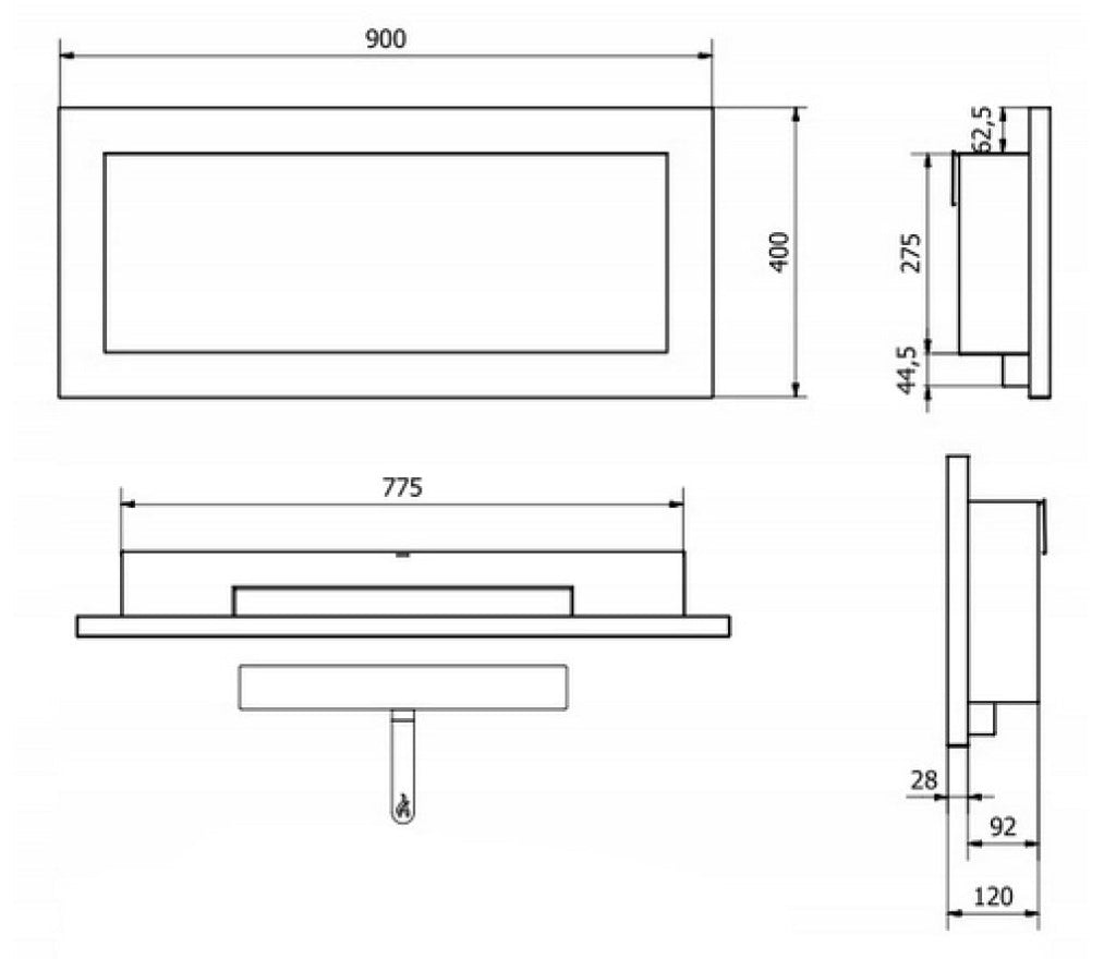 - Accessoires : pierres décoratives blanches + entonnoir pour remplissage bioéthanol