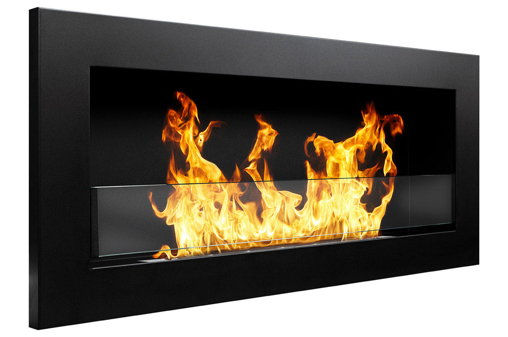 Cheminée murale au bioéthanol 90x12x40 cm avec verre en acier inoxydable noir