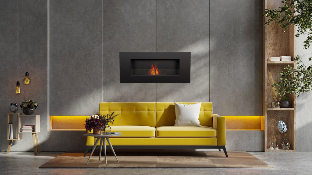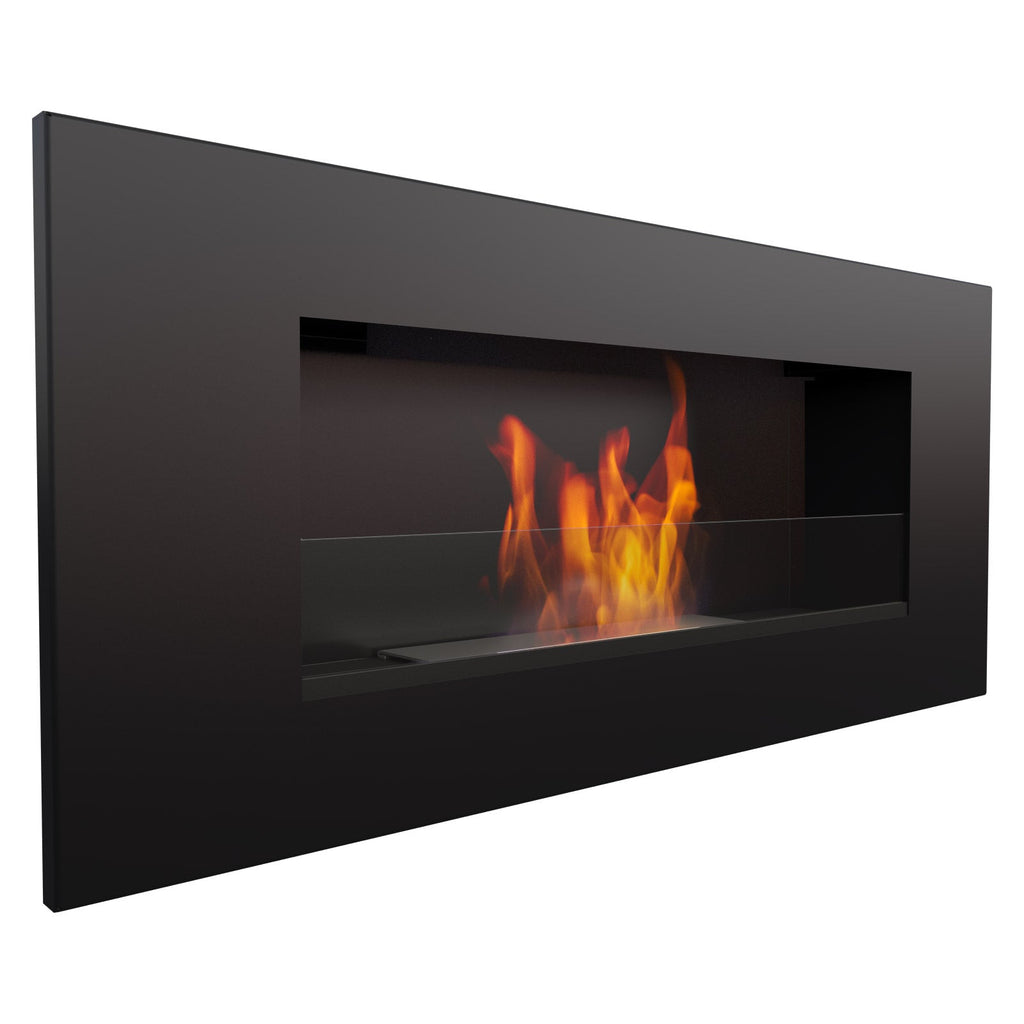 Cheminée Bioéthanol Murale 90x40 cm avec Vitre ou Sans Vitre Flig Huston 2 Noir
