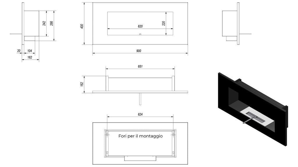 - Dimensions brûleur (HxLxP) : 5,2x30x10 cm