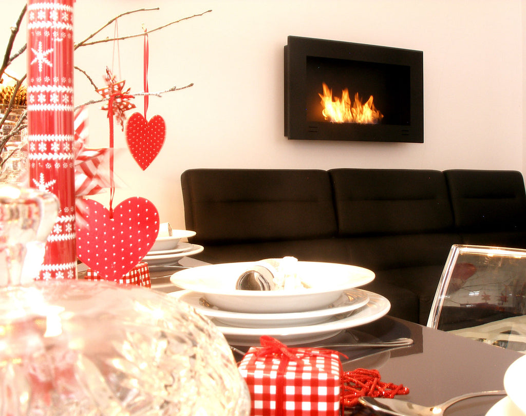 Cheminée murale au bioéthanol 90x50 cm intérieur 900 noir avec verre