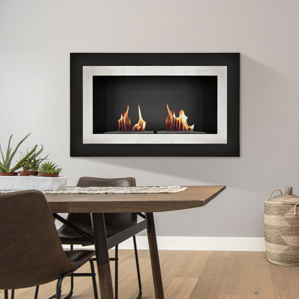 Cheminée Bioéthanol Murale Noir et Acier Taylor 90x55x17 cm