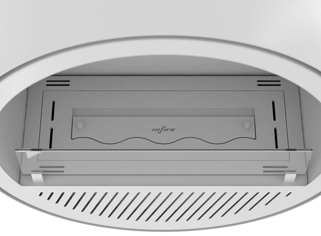 Un inserto in fibra di ceramica con una maglia aumenta la sicurezza e prolungando e ottimizzando il processo di combustione. La striscia scorrevole consente di regolare la dimensione della fiamma e di spegnere in sicurezza il camino, e la forma a onda crea un ulteriore effetto 3D. Il Camino ha un sistema di sfiato che impedisce l'accumulo di pressione sotto il bruciatore in caso di traboccamento di combustibile. Un serbatoio aggiuntivo sotto il bruciatore garantisce una maggiore sicurezza in caso di perdite di combustibile all'esterno della fornace. I supporti per i vetri sono abbinati al colore interno del bruciatore.