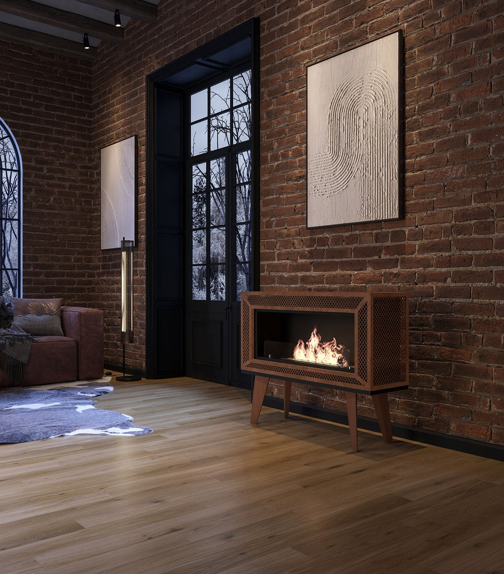 Ce type de biocheminée est souvent choisi dans le cas de pièces spacieuses, dans lesquelles plusieurs espaces sont reliés, par exemple un salon avec une salle à manger. Son montage ne nécessite pas d'installation compliquée ni de raccordement à la cheminée. Il est facile à installer et intuitif à utiliser.