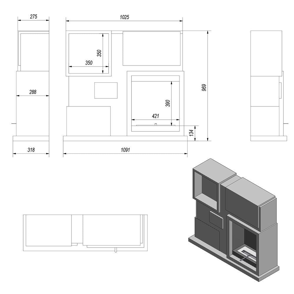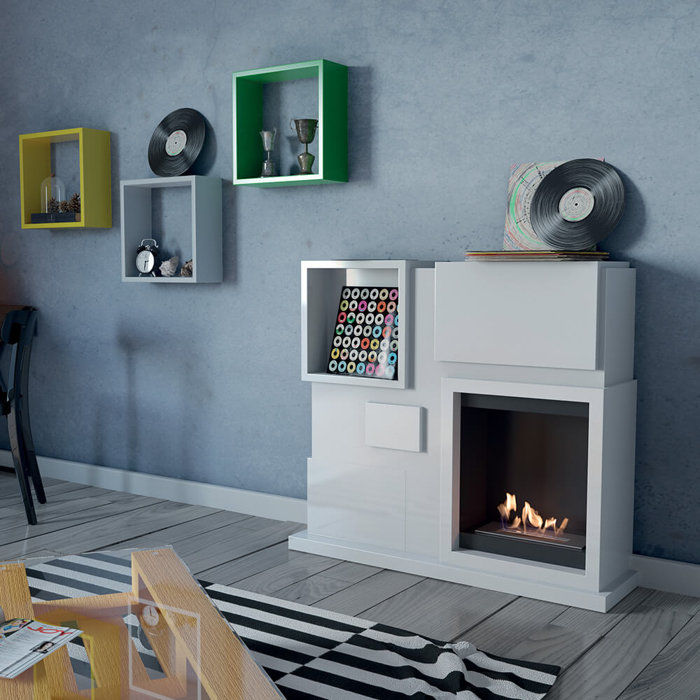 Cheminée au bioéthanol au sol adaptée à tout type d'environnement à la fois classique et moderne. Facile à installer, cette bio-cheminée peut être placée sur n'importe quel mur plat, elle dispose également d'un compartiment qui permet de placer des objets, des photos, etc., la transformant en un véritable meuble. En ajoutant quelques gouttes d'essence parfumée au bioéthanol, la biocheminée peut également être utilisée comme diffuseur d'arômes.