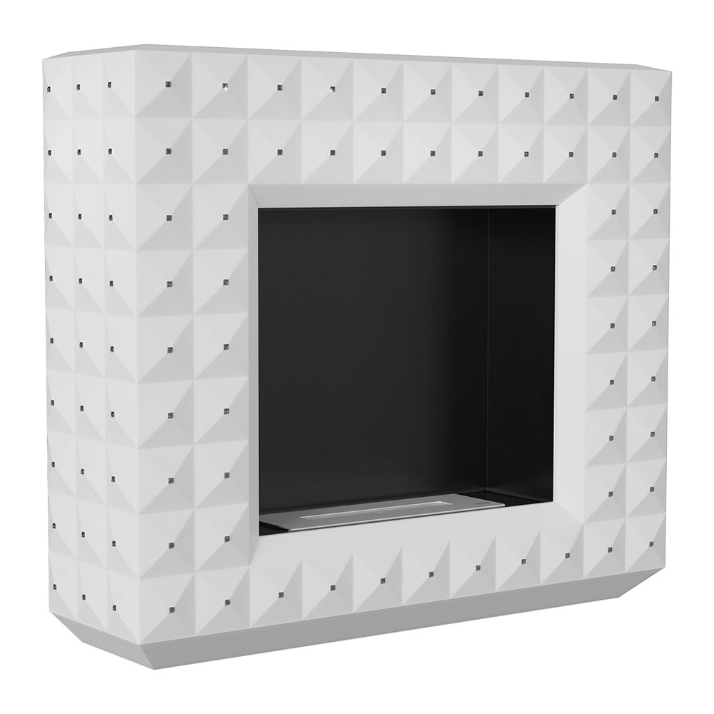 Cheminée au Sol au Bioéthanol 113x97,3 cm Flig Boise Swarovski Blanc Mat