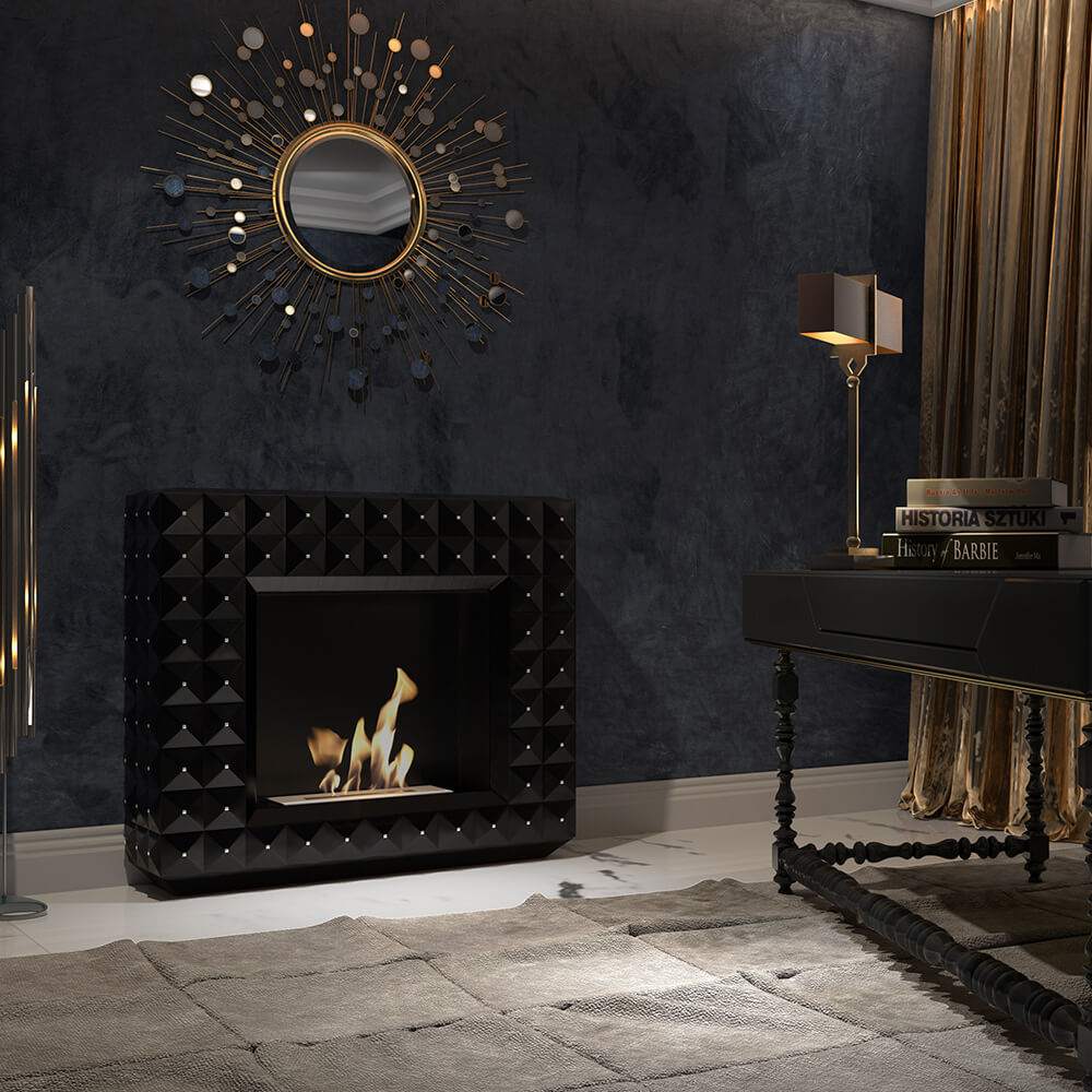 Cheminée au Sol au Bioéthanol 113x97,3 cm Flig Boise Swarovski Noir Mat