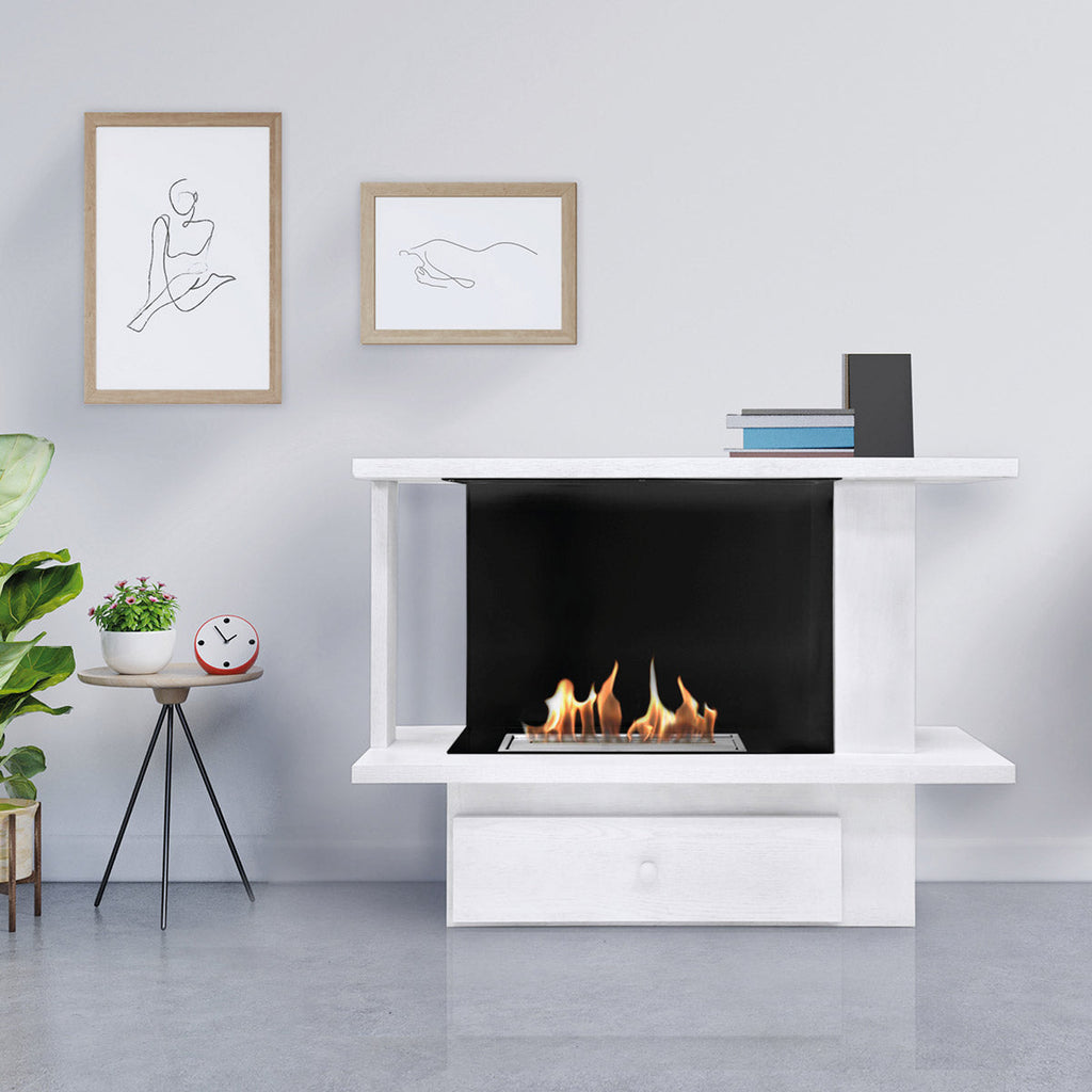 Cheminée au Sol au Bioéthanol 115x78x42,5 cm Grace Blanc