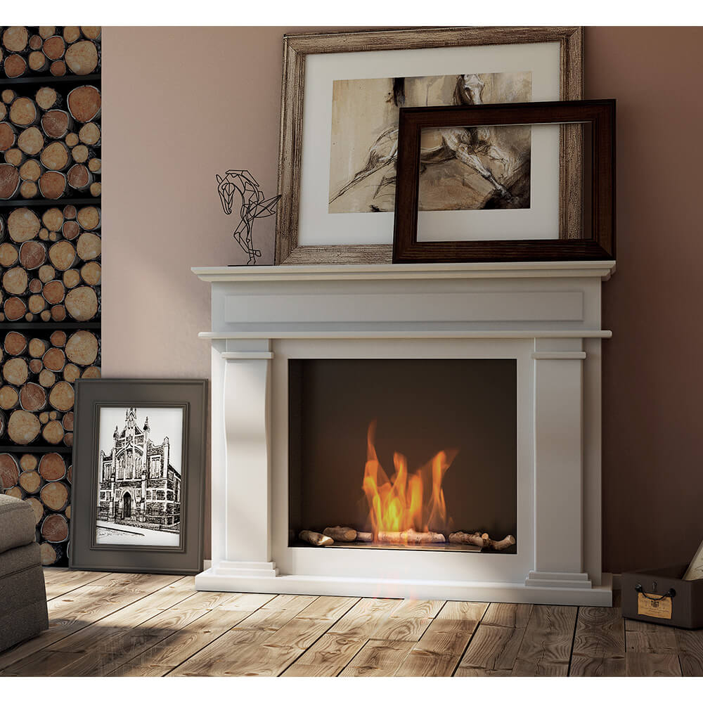Cheminée au bioéthanol au sol au design classique qui émule une véritable cheminée traditionnelle. Facile à installer, cette cheminée bio peut être placée sur n'importe quel mur plat. En ajoutant quelques gouttes d'essence parfumée au bioéthanol, la biocheminée peut également être utilisée comme diffuseur d'arômes.