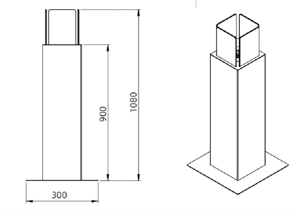 Camino a Bioetanolo da Pavimento 20x20x110 cm per Esterno Capri 110 Nero