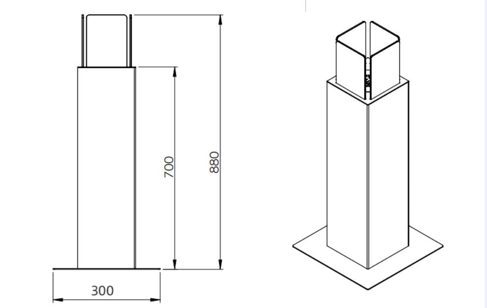 Camino a Bioetanolo da Pavimento 20x20x70 cm per Esterno Capri 70 Nero