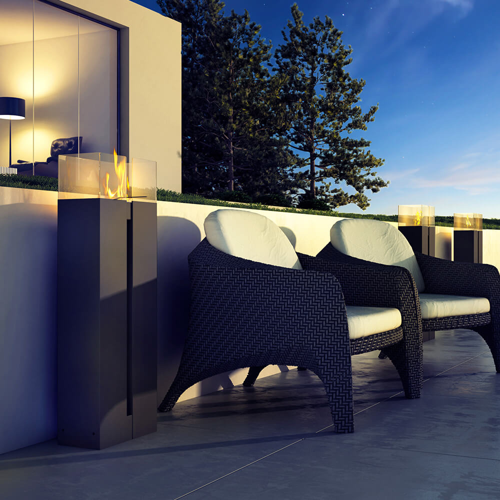 Cheminée au sol au bioéthanol. Faciles à installer, les bio-cheminées au sol sont mobiles et adaptées à tous les environnements. D'un design moderne, il convient aussi bien à l'intérieur qu'à l'extérieur pour meubler terrasses ou jardins, vous permettant ainsi de créer des ambiances chaleureuses aussi bien en été qu'en extérieur, et en hiver dans votre salon. En ajoutant quelques gouttes d'essence parfumée au bioéthanol, la biocheminée peut également être utilisée comme diffuseur d'arômes.