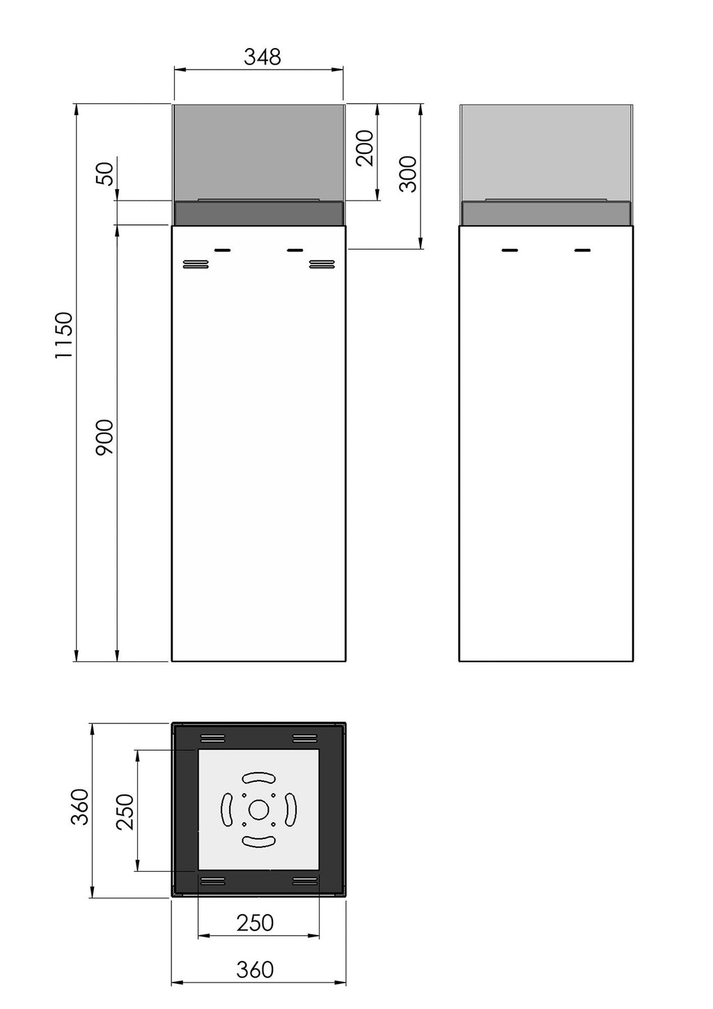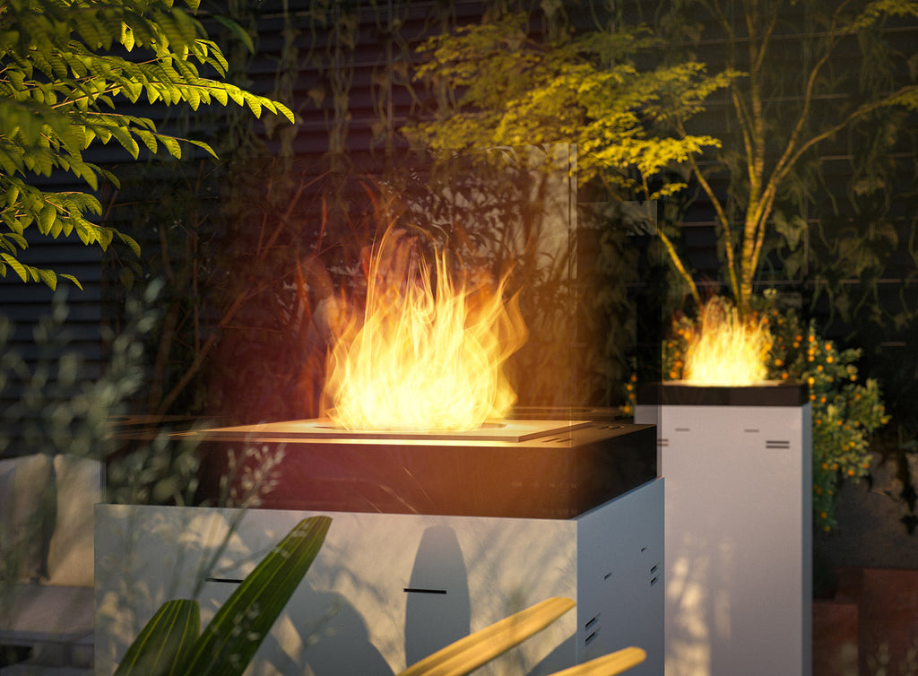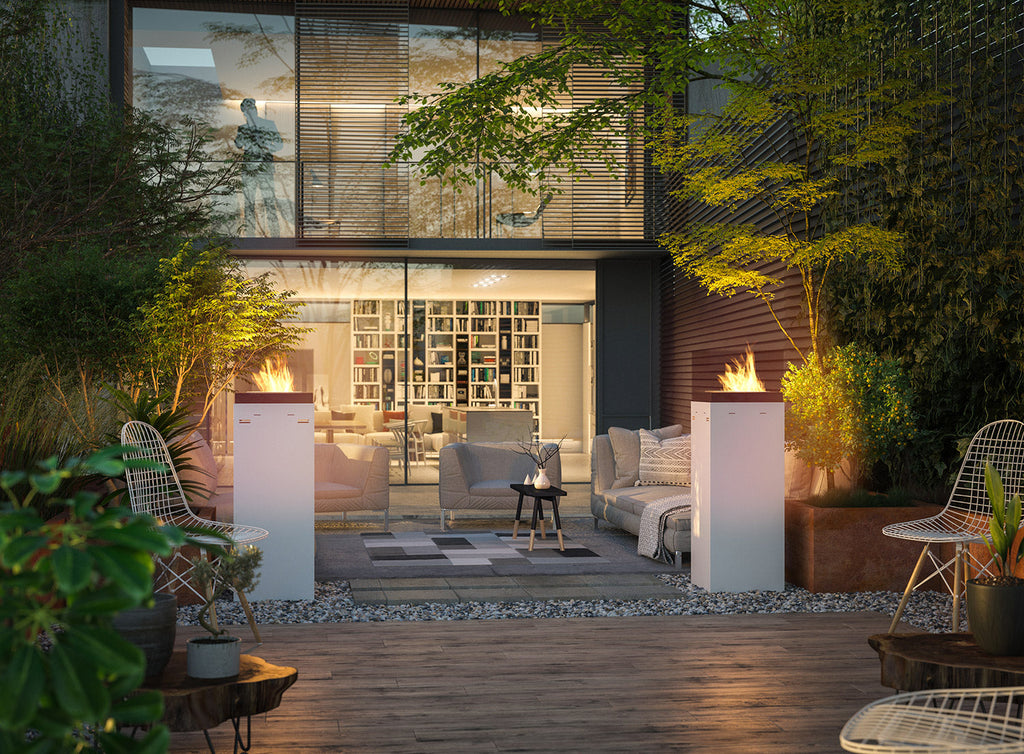 Instate 1150 est la forme la plus élevée de cheminée Instate 850 La bio-cheminée a la forme d'un pilier géométrique avec foyer et verre de sécurité. Il sera parfait non seulement à l'intérieur, mais aussi à l'extérieur (par exemple sur les terrasses, les balcons ou à l'entrée des bâtiments ou des immeubles).