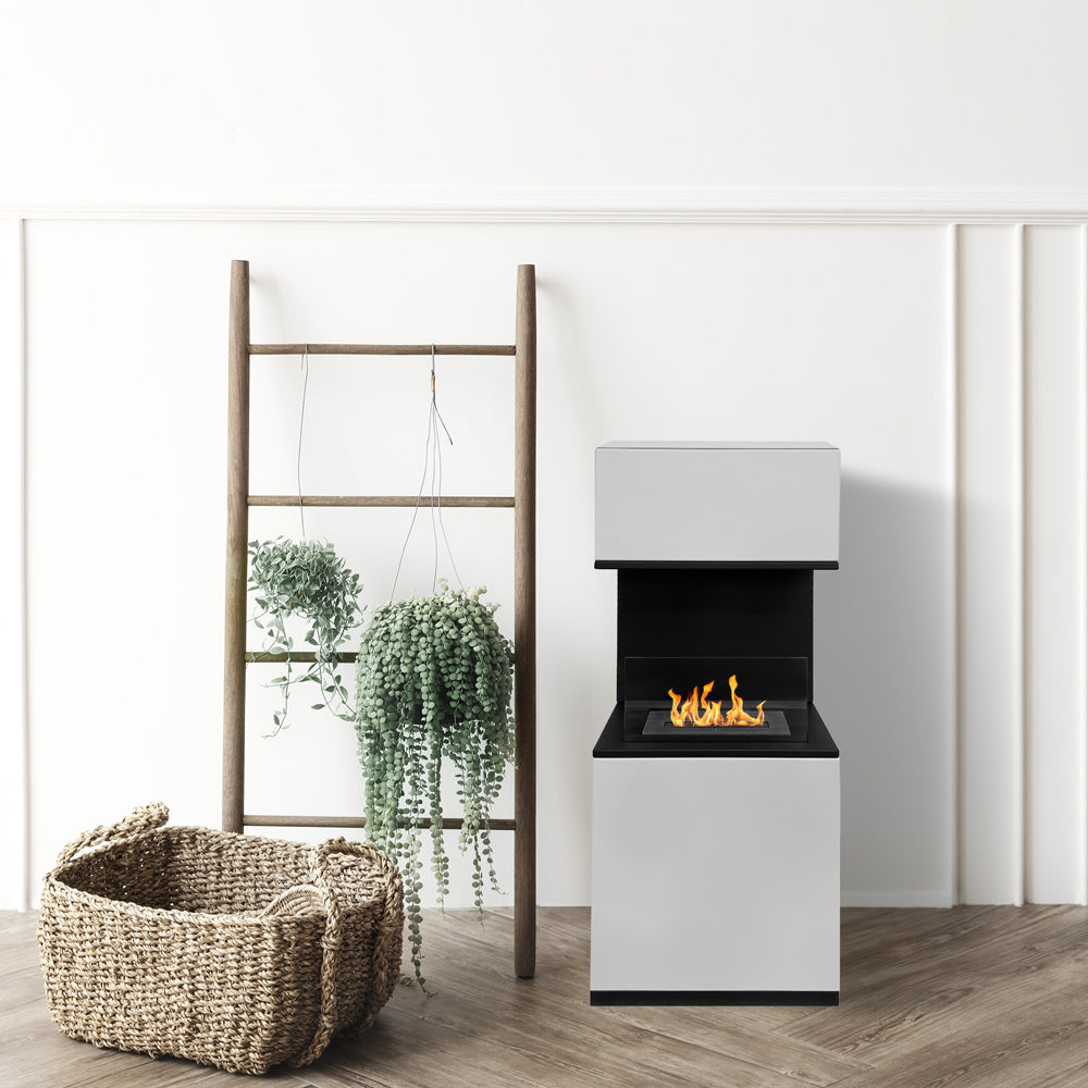 Camino a Bioetanolo da Pavimento 38x38x100 cm Oslo in acciaio Bianco