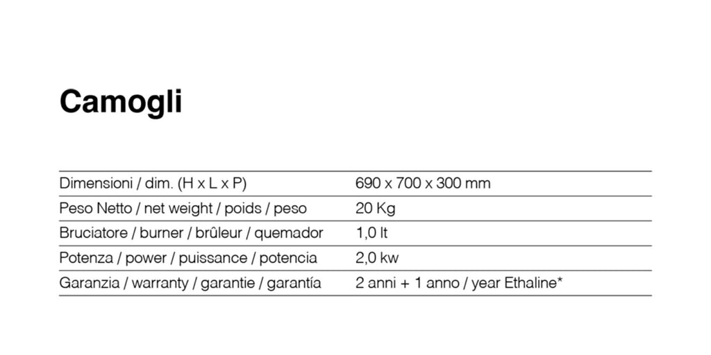 • Potenza Termica Massima: 2000W