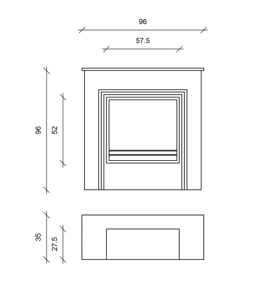 - Dimensions intérieures du foyer (LxlxH) : 57,5 x 27,5 x 52 cm