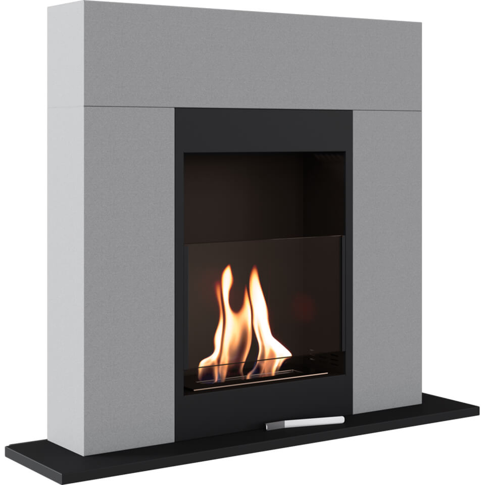 Bio-cheminée qui a été conçue pour représenter une cheminée traditionnelle à feu ouvert, caractéristique du style anglais de design d'intérieur .