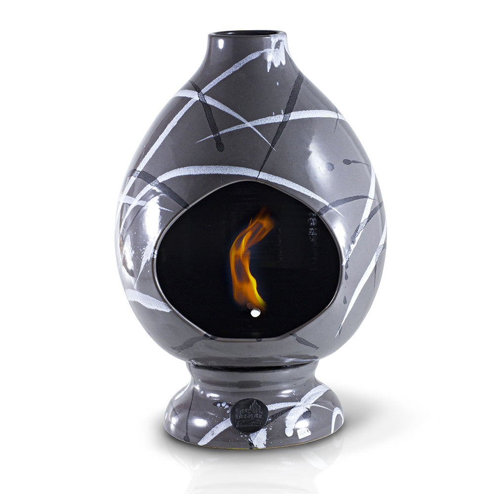 Nos cheminées sont fabriquées en faïence avec deux cuissons entièrement à la main dans notre laboratoire. La majolique rayonne uniformément la chaleur via des rayons infrarouges bénéfiques similaires à ceux du soleil. Il ne nécessite pas de cheminée. Le bioéthanol est un distillat de betteraves ou de céréales, naturel, inodore, ne dégage pas de fumée et est non toxique. La combustion ne produit que du dioxyde de carbone. Nous vous recommandons d'aérer la pièce au moins une fois par jour. La chaleur produite n'est pas dispersée par le conduit de fumée et reste dans la pièce avec un rendement énergétique de 100 %. Le pouvoir calorifique est supérieur à 0,716 kw dérivant de la simple combustion horaire du bioéthanol, puisque la céramique absorbe la chaleur ou la rayonne comme un radiateur. La consommation est d'environ 100 cc par heure. Le brûleur est en acier inoxydable et comprend la lame de l'extincteur.