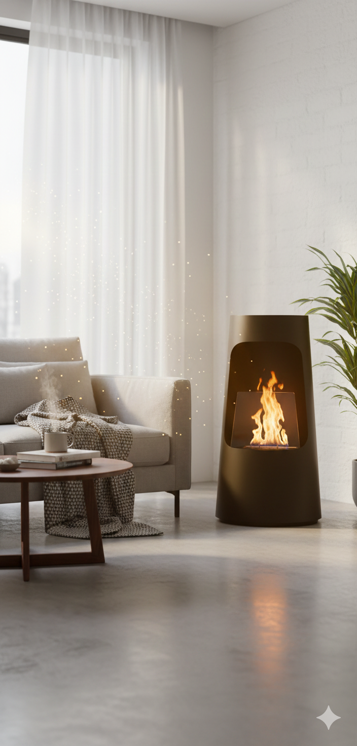 La bio-cheminée ne nécessite aucune connexion à aucun type de système, elle peut facilement être déplacée ou positionnée là où elle est la mieux pensée, comme un meuble.