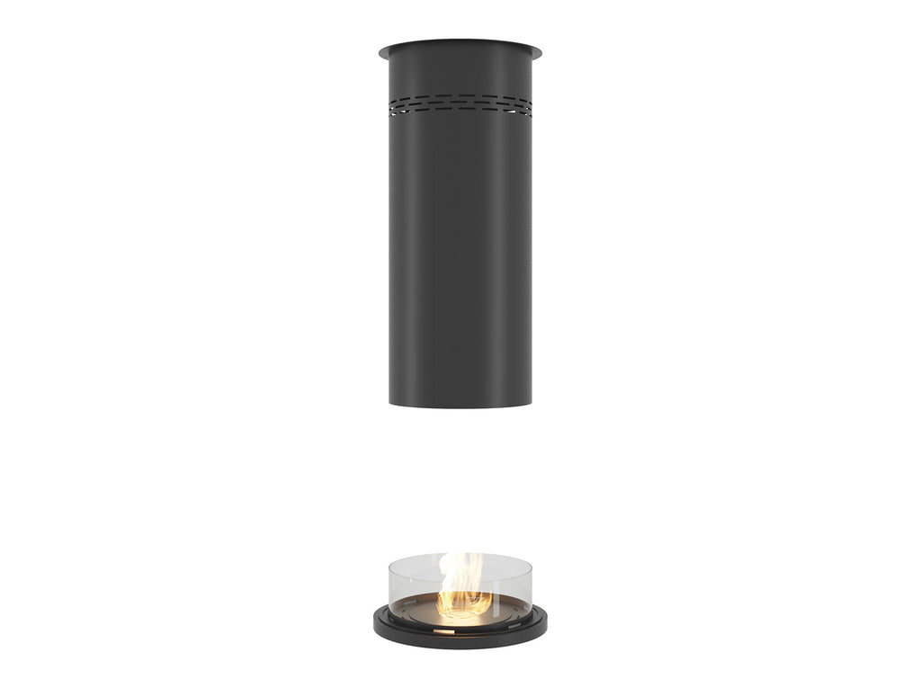 Cheminée au Sol au Bioéthanol Ø80 cm avec Faux Conduit Noir Encastré