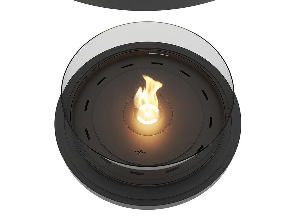 Inround est une bio-cheminée à la forme originale. La forme ronde permet d'admirer la cheminée de toutes parts, comme un feu. La base peut être montée directement dans le sol ainsi que dans des bâtiments, par exemple des meubles. Le tuyau design suspendu au plafond simule le conduit d'évacuation des fumées (fumées absentes lors de la combustion du bioéthanol). Inround est une cheminée design qui peut être utilisée n'importe où.