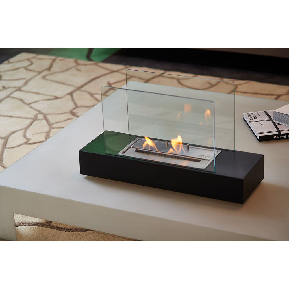 Biocheminée de table en métal avec 2 panneaux en verre trempé Cremona .