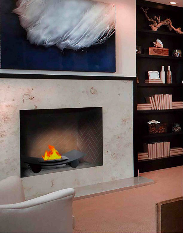 Braciere a bioetanolo da appoggio con bruciatore da 0,5 lt. In acciaio verniciato nero. Bruciatore certificato con lana di roccia. È possibile inserirlo in un camino e utilizzarlo come braciere oppure in appoggio su un piano.