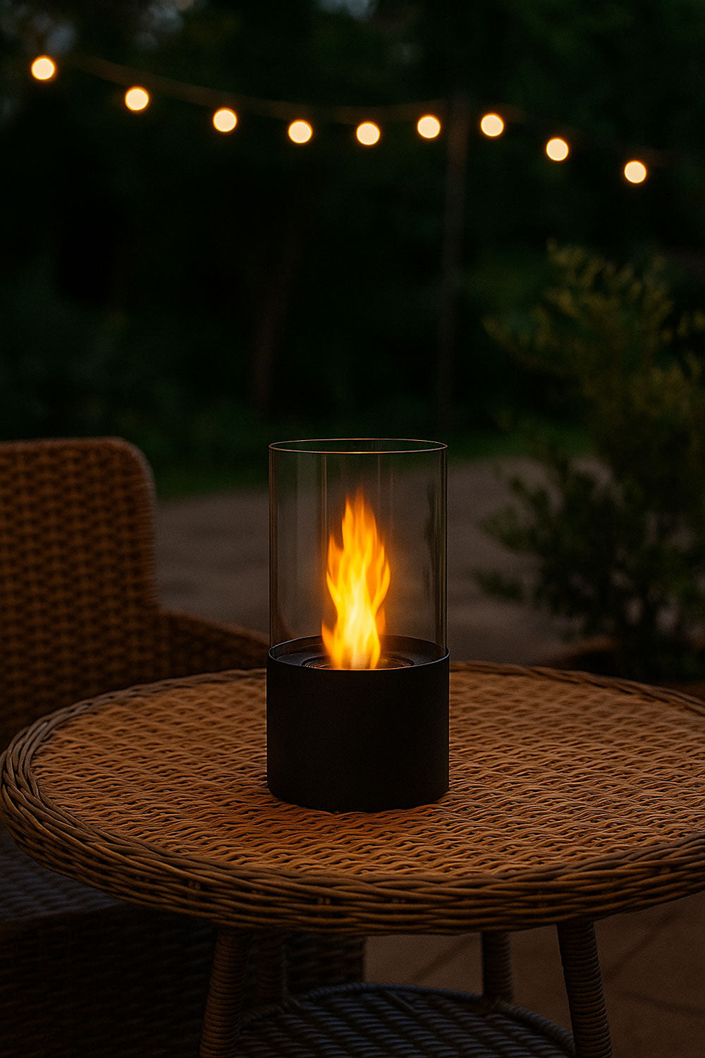 Aggiungi un tocco di eleganza e calore all'ambiente con il caminetto da tavolo Giotto Nero. Ideale per interni ed esterni, questo bio-camino unisce design raffinato e sicurezza certificata, creando un'atmosfera accogliente in pochi istanti.