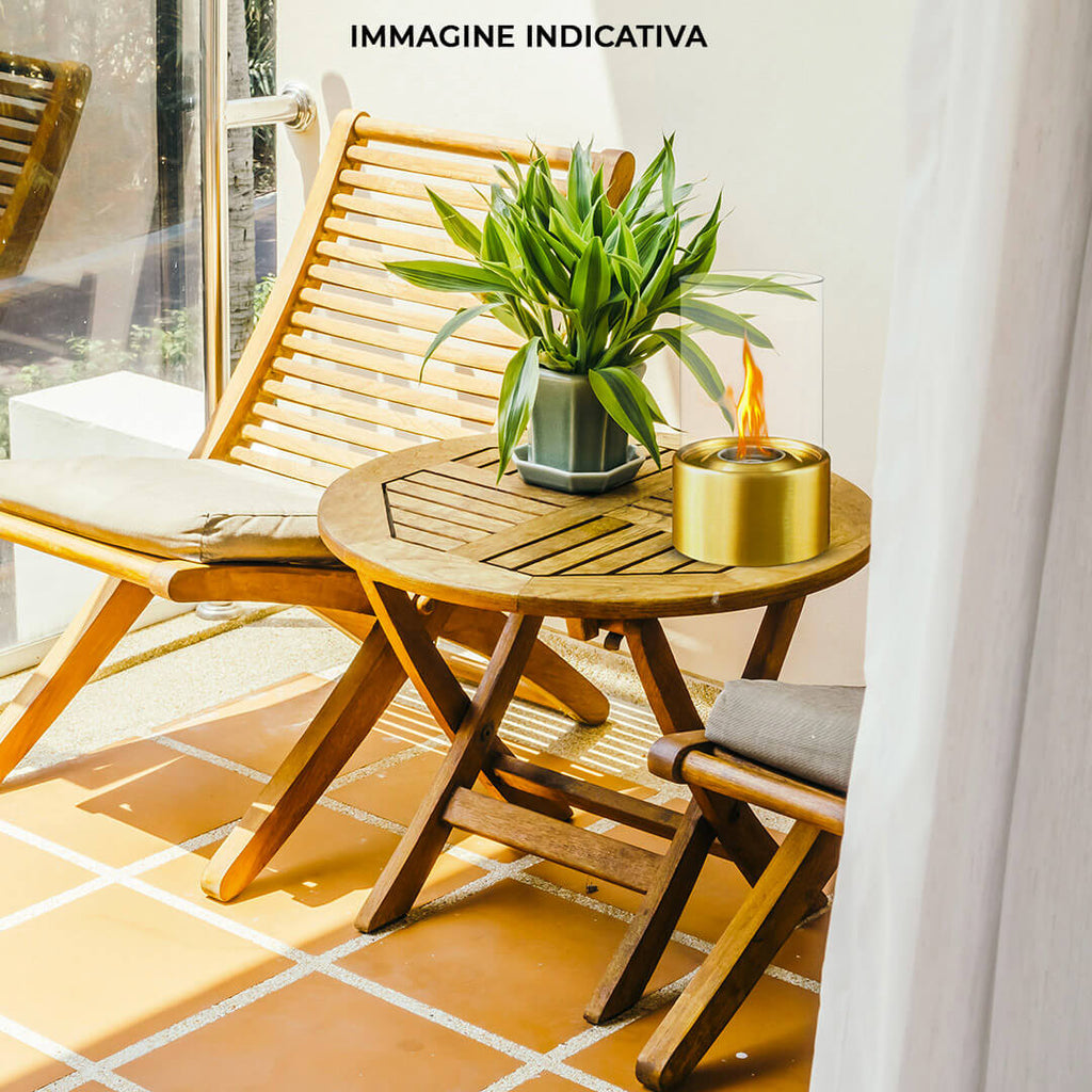 Cheminée de Table au Bioéthanol Ø16x27 cm en Acier et Verre Argenté