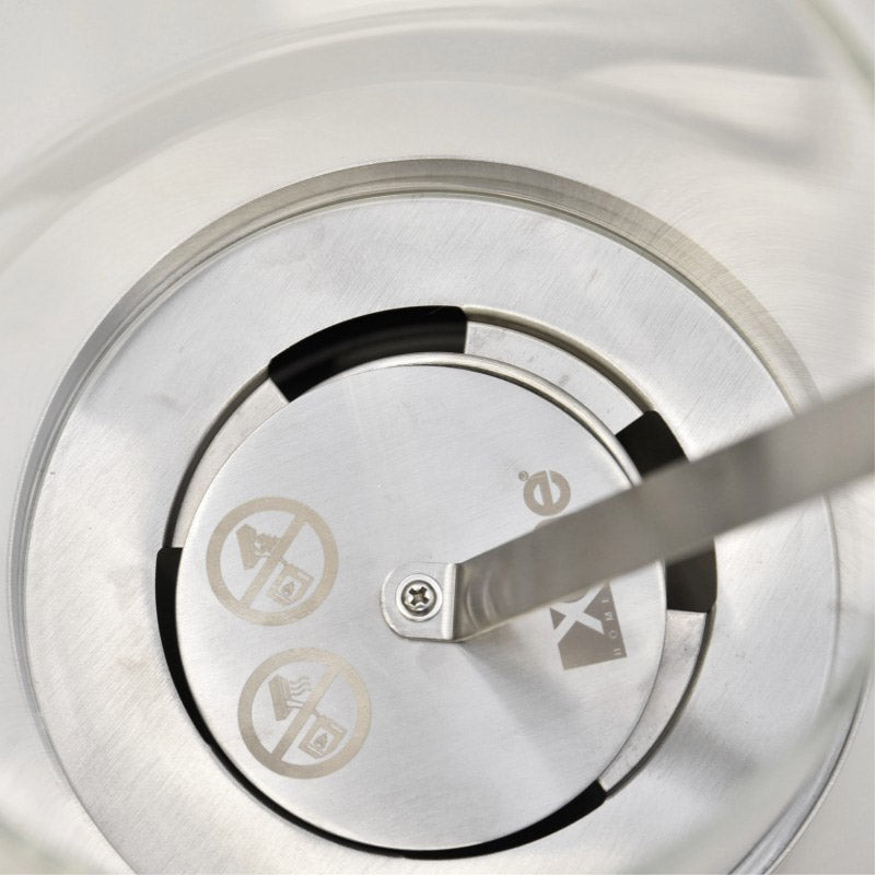 Le Biofireplace Cloud a un format de table qui évoque les caractéristiques d'une bougie sans mèche. La base cylindrique blanche soutient le verre circulaire à travers lequel vous pouvez profiter de la flamme dansante sans obstacles.