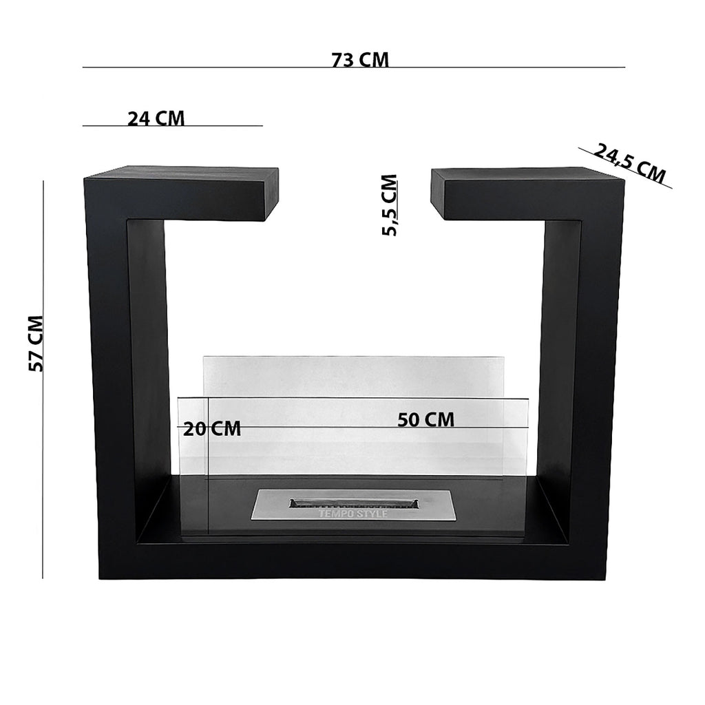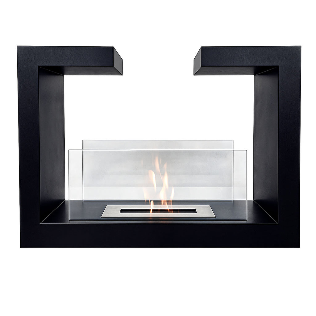 Camino a Bioetanolo da Terra Venus Free Standing Geometrico e Vetri Protettivi Serbatoio 850 ml in Acciaio Verniciato Nero