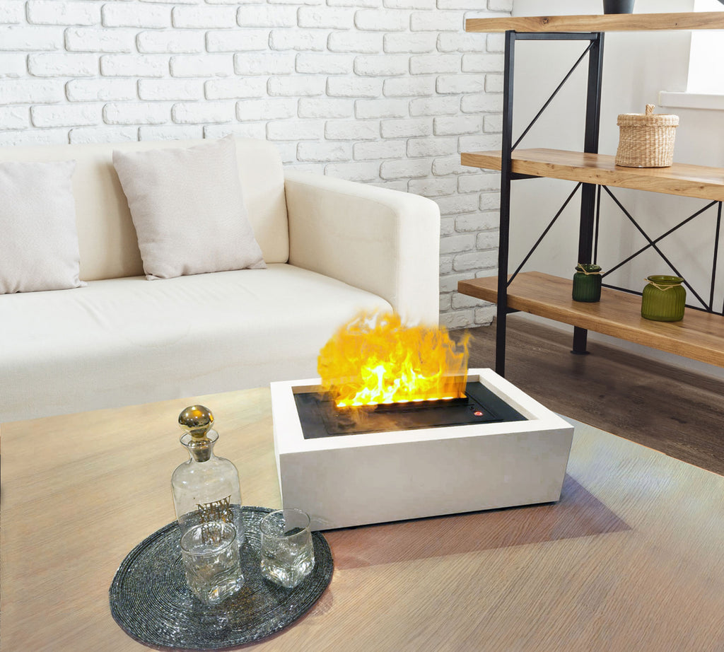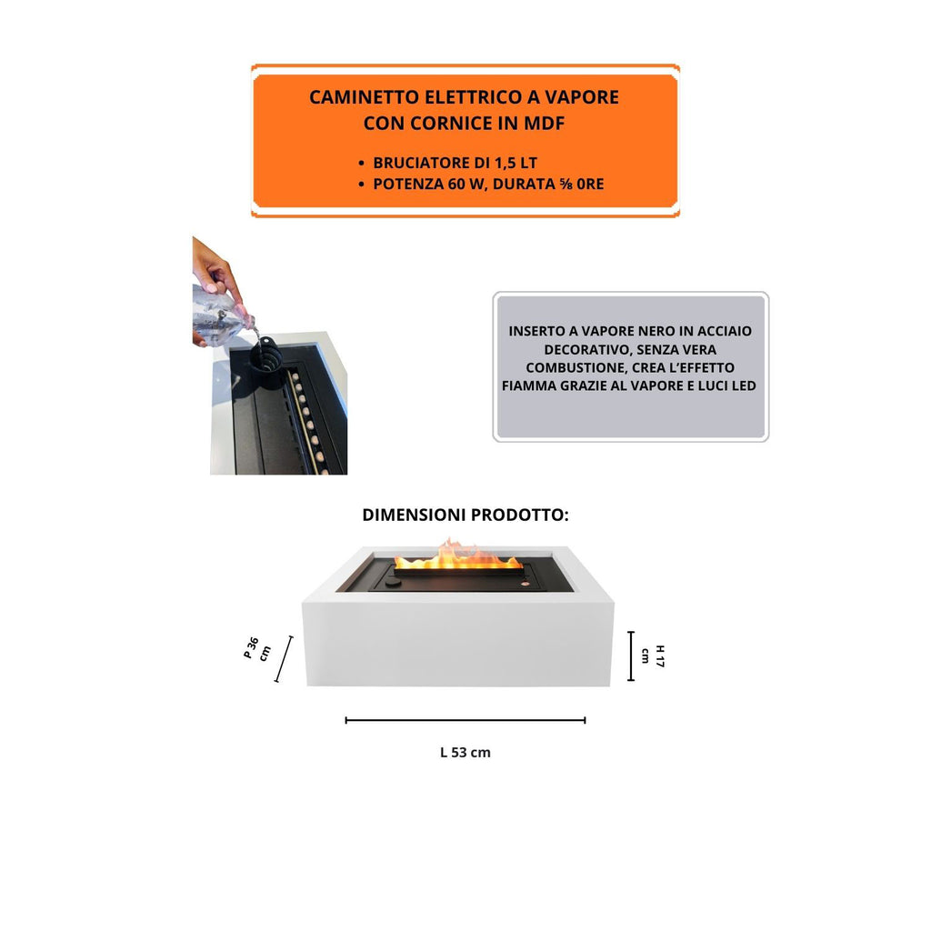 Camino a Vapore da Tavolo Laguna Serbatoio da 1,5 L Cornice in MDF Bianco