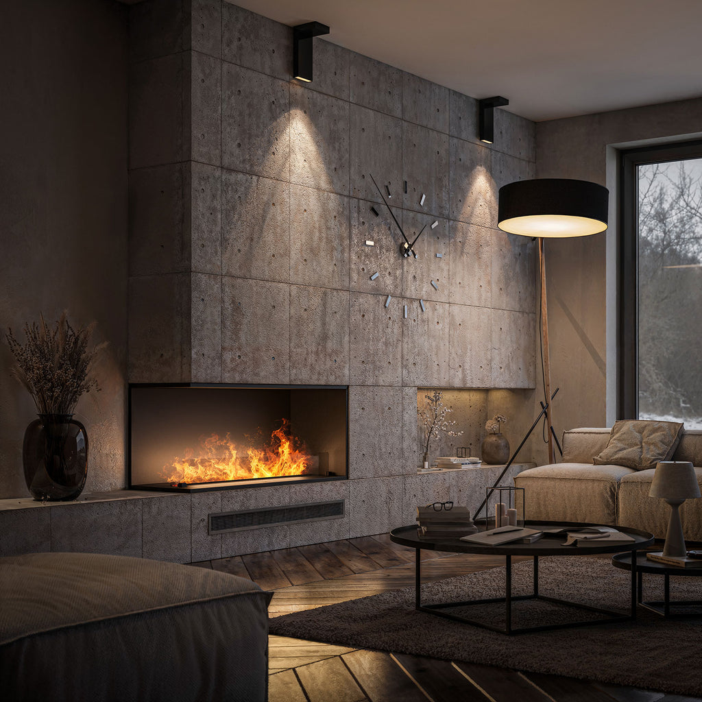 Camino a Vapore Elettrico Bifacciale Angolare a Sinistra 120x50x40 cm Invapo Corner L1200 Nero