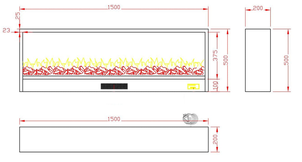 - Puissance totale 1500W avec 2 sélections possibles 750 et 1500W directement depuis le foyer ou depuis la télécommande
