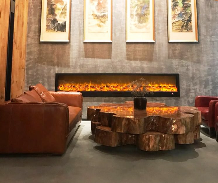Grande cheminée électrique adaptée aux pièces de plus de 30 mètres carrés.