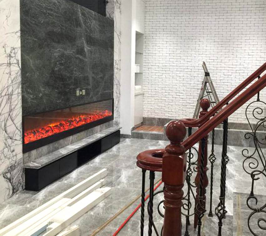 - Imposante cheminée électrique d'intérieur, pour encastré. Idéal pour les grandes pièces, y compris les pièces représentatives.