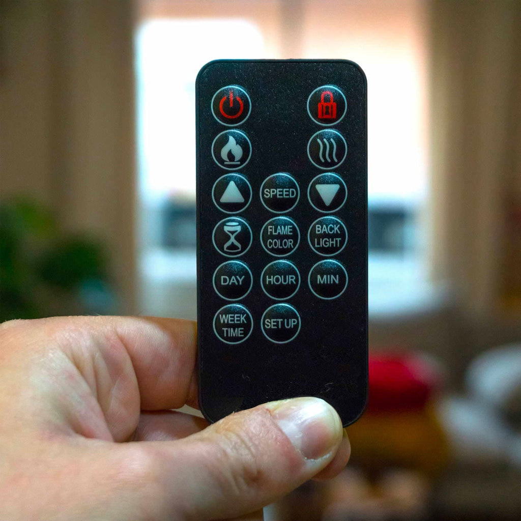 Deux niveaux de puissance 750-1500W. Possibilité de le contrôler manuellement ou avec la télécommande incluse. Possibilité d'utiliser uniquement l'effet flamme sans la fonction chauffage.