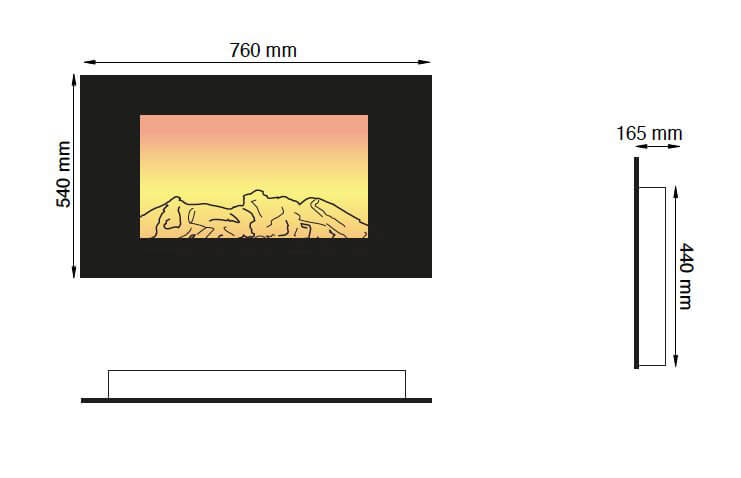 Caractéristiques techniques Cheminée murale électrique Ruby Fires Varese